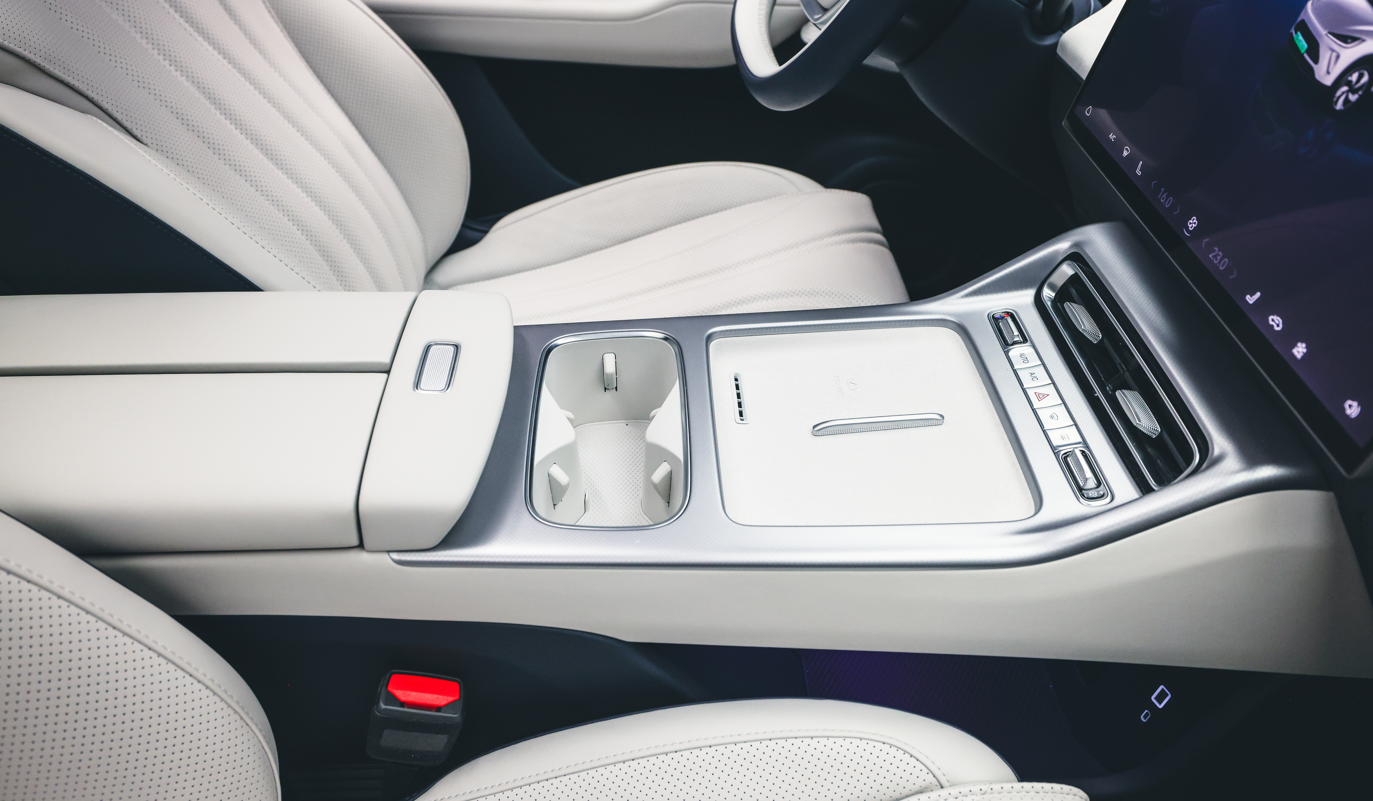 双层结构的中央通道将实用性拉满,上层50W无线充电面板快充效率在线,轻松满足日常补能需求;下层隐藏式储物空间容量充足,能轻松收纳各类杂物,让车内保持整洁。空调快捷控制区采用拨杆+实体按键组合,兼顾了操作效率与行车安全,日常使用十分顺手便捷。